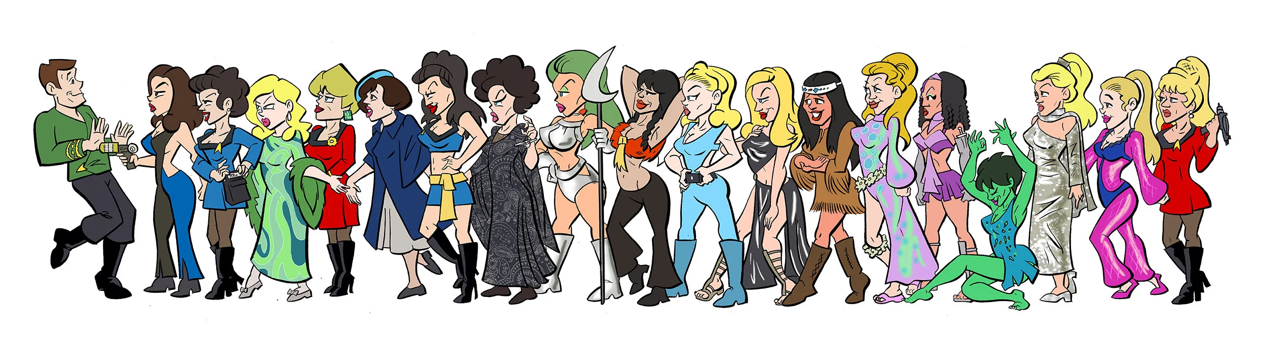 Also, my "Captain Kirk and His Ladies" piece will be auctioned at the NYCC charity auction. The original and a giclee print (24x6, full color) are a package. This is the only place you can get the green wrap shirt Kirk.